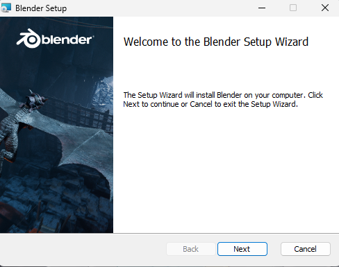• alt:Blenderセットアップウィザードの開始画面(Next)