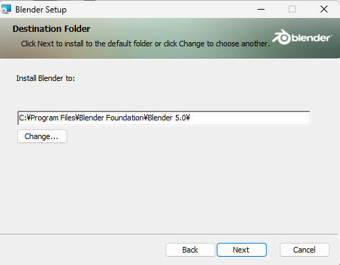 • alt:Blenderのインストール先フォルダ設定画面(Windows)