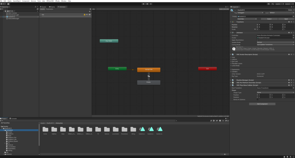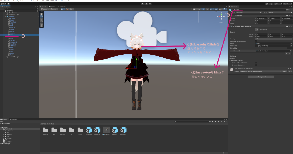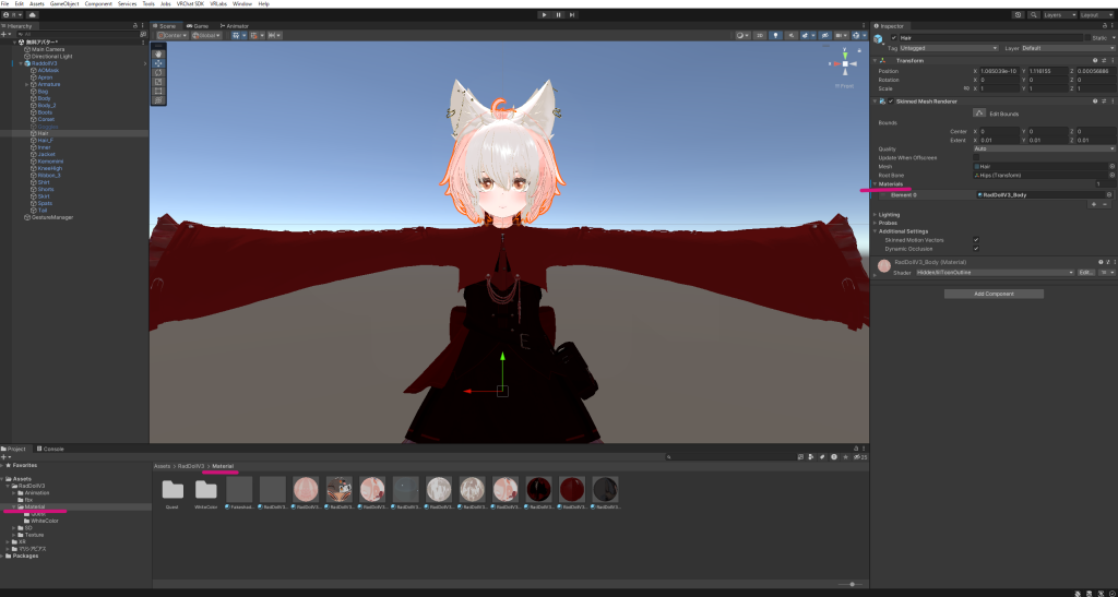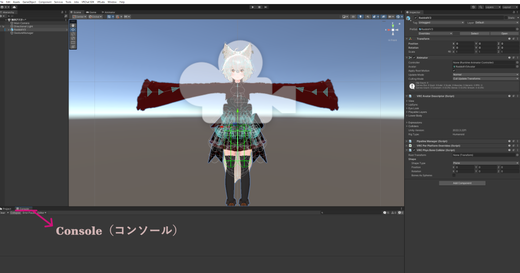 アバターのパーツやアクセサリーなど、すべてGameObjectとして表示される